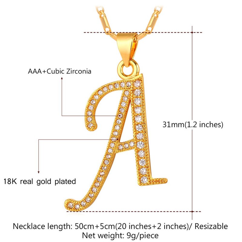 U7 Letter Necklace 18K Gold Plated Cubic Zirconia Iced Out Pendant Monogram Style Initial Necklace, Alphabet A