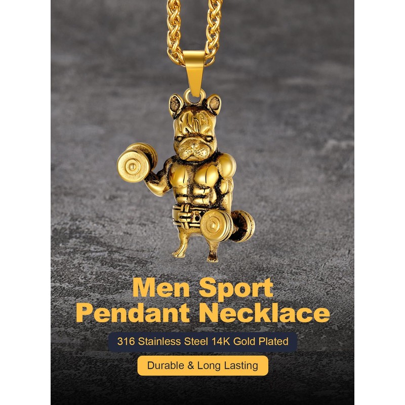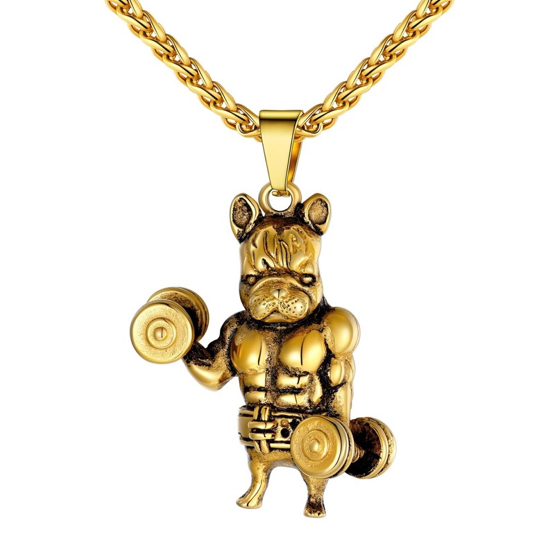 U7 Masculine Workout Jewelry Men Gold Plated Chain with Bulldog Pendant Cool Fitness Necklaces