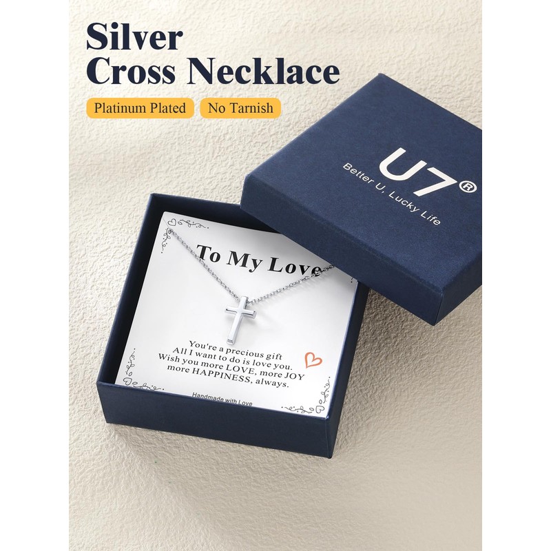 U7 Silver Cross Necklace for Women Cross Pendant Stainless Steel Chain with Message Card To My Love Christian Necklaces Jesus Jewellery for Her