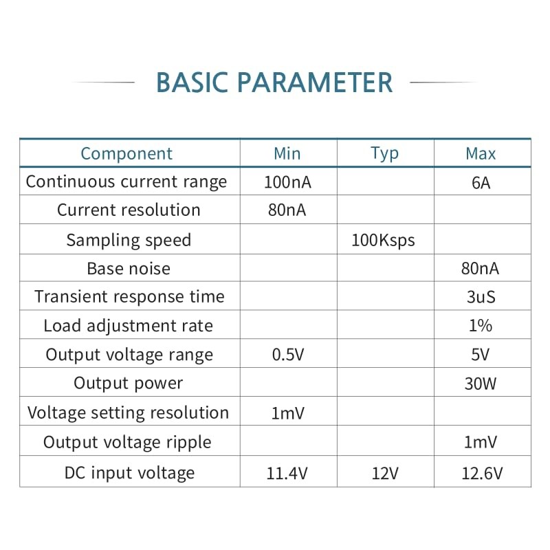 - Continuous current range : 100nA - 6A