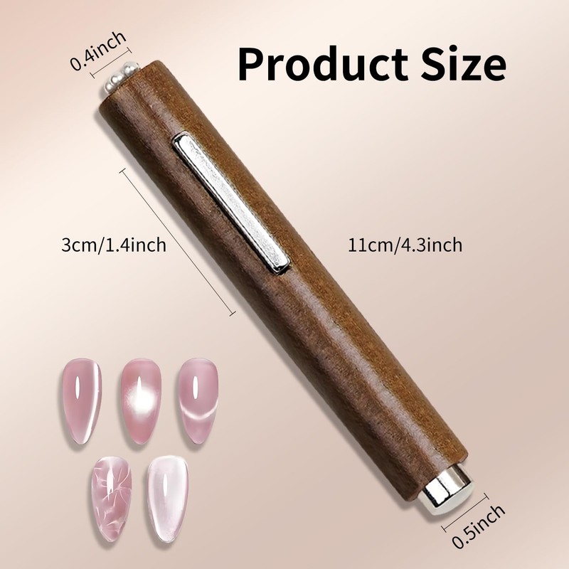 uadbau Cat Eye Magnet for Nails, Multi-Functional Wooden Handle Nail Magnet Pen, 3-in-1 Cylindrical Art DIY Tool for Stunning Cat Eye Gel Polish Design (Black Walnut)