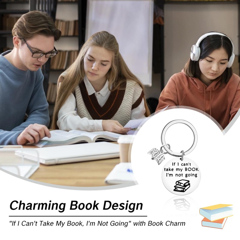 - Unique and Fun Design: This book keychain is hand-stamped with the humorous quote, "If I Can't Take My Book, I'm Not Going", accompanied by a charming book pendant, making it an ideal accessory for bookworms
