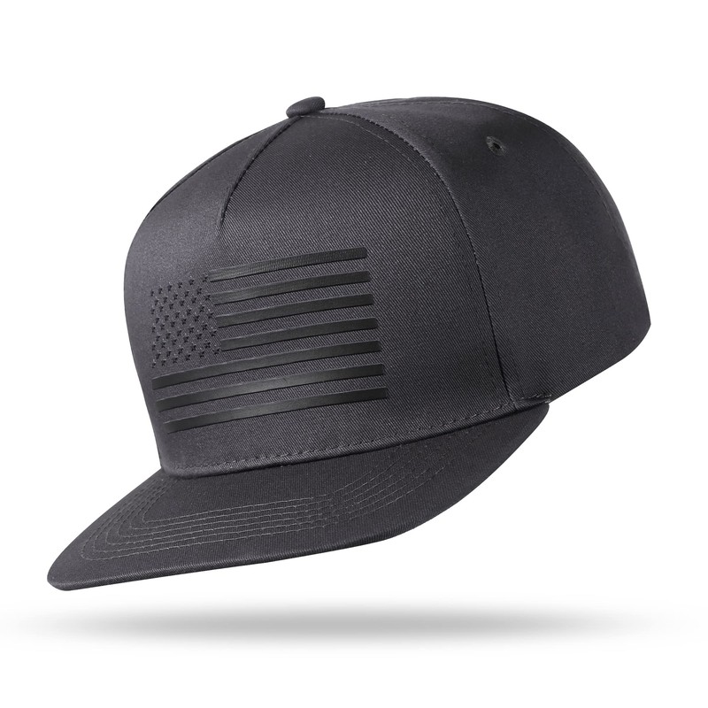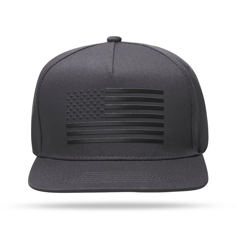UALON Baseball Cap, Snapback Trucker Hat for Men & Women with American Flag and Adjustable, Breathable Mesh, Flat Bill Hats Dark Gray