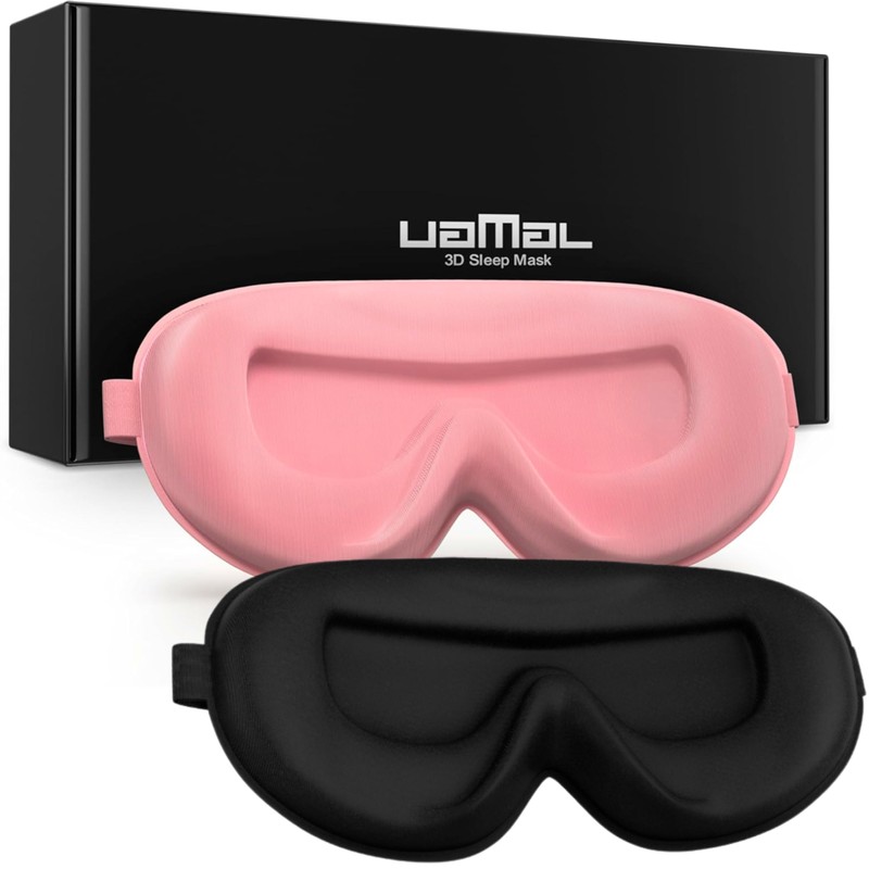 UAMAL Pack of 2 Sleep Mask, Eye Mask for Sleeping, Eye Mask,100% Blackout Sleeping Masks, Sleep Masks for Women & Men, Zero Pressure Sleep Eye Mask with Adjustable Strap, Travel Essentials, 3D Sleep Masks