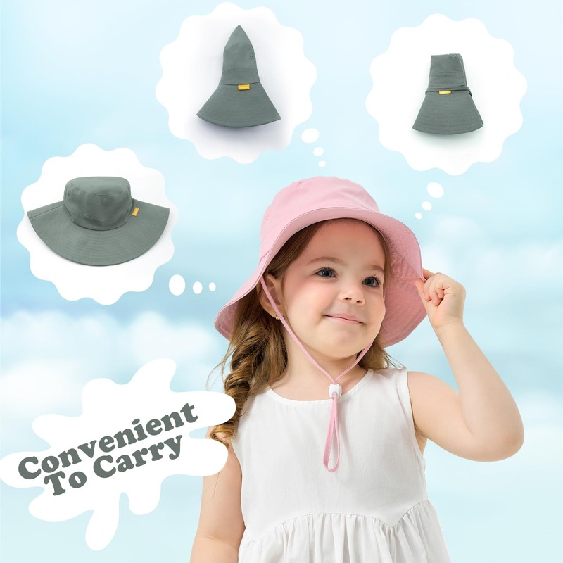 - Soft Cotton Fabric: The outer layer and lining of the toddler girl sun hat are made of soft cotton which cares for your baby's skin on hot days. This toddler beach hat is foldable and lightweight, so you can easily store it in your luggage when you take it anywhere.