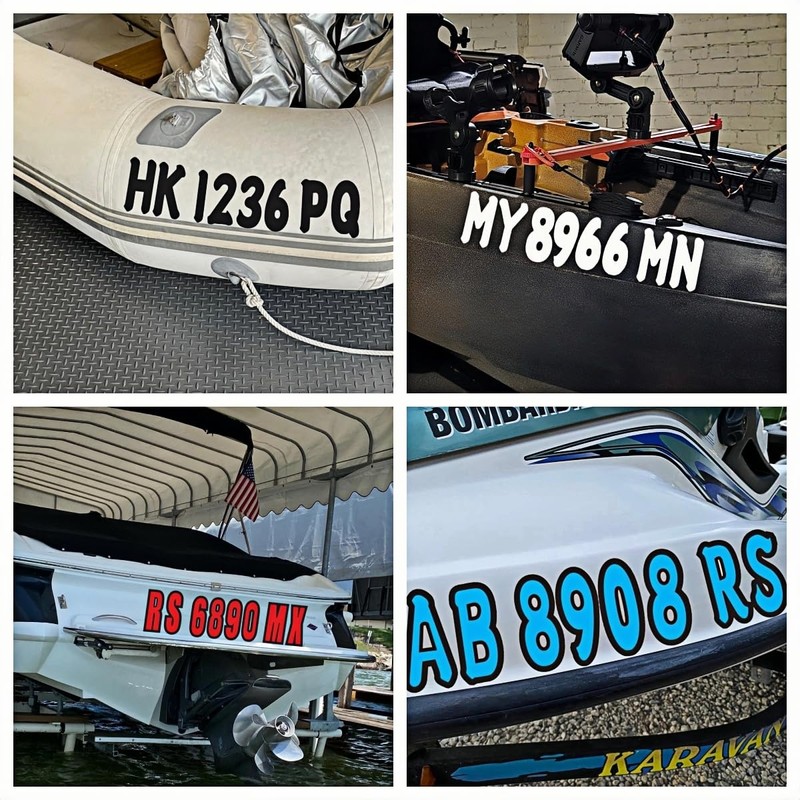 - Boat Registration Letter and Number Kit for boats and personal watercraft, Includes four (4) sets of A-Z and four (4) sets of 0-9 (in Total 104 Letters and 40 Numbers, 4 of Each Letter and Number)
