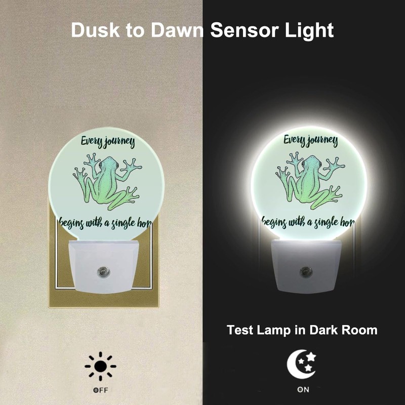 Uanvaha Funny Frog Night Light Every Journey Begins with a Single Jump Night Lights Plug into Wall for Boys Girls, Led Lamp for Stairway/Hallway/Bedroom 0.5W Nightlight Sleep Friendly