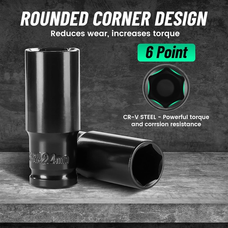 - Complete Metric Socket Solution: Our comprehensive impact Socket Set Wrench kit covers sizes 10-11-12-13-14-16-17-19-21-22-24mm, ensuring you have the right tool for any bolt or nut in your automotive, household repairs, or DIY projects