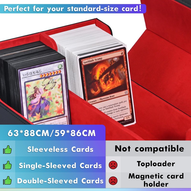 - 𝗦𝘂𝗽𝗲𝗿 𝗟𝗮𝗿𝗴𝗲 𝗖𝗮𝗽𝗮𝗰𝗶𝘁𝘆 𝗖𝗮𝗿𝗱 𝗕𝗼𝘅 - This card storage box is large enough to store 1600+ sleeveless trading game cards easily. Also suitable for holding 700+ double-sleeved cards or 1200+ single-sleeved cards, but not with top loader sleeves and magnetic card holders. SURPRISE GIFT!!! Comes with 8 card dividers (Random Color)