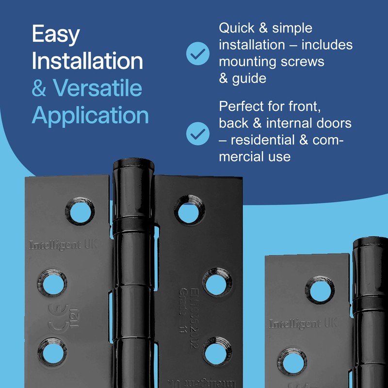 - HEAVY-DUTY CONSTRUCTION – Robust mild steel ball bearing door hinges (4 inch) designed for constant use on heavyweight external and internal doors, delivering smooth, silent operation.