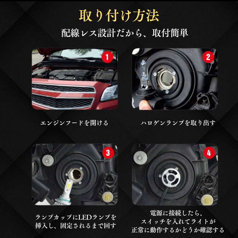 UB-Lab. Car Headlight LED Lamp High Beam White 6000K Waterproof Dustproof COB 12V 8000lm 2pcs Set