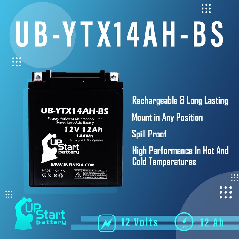 - UB-YTX14AH-BS Battery Replacement for 1999 Polaris All Models 250 CC ATV - Factory Activated, Maintenance Free, Motorcycle Battery - 12V, 12AH, UpStart Battery Brand