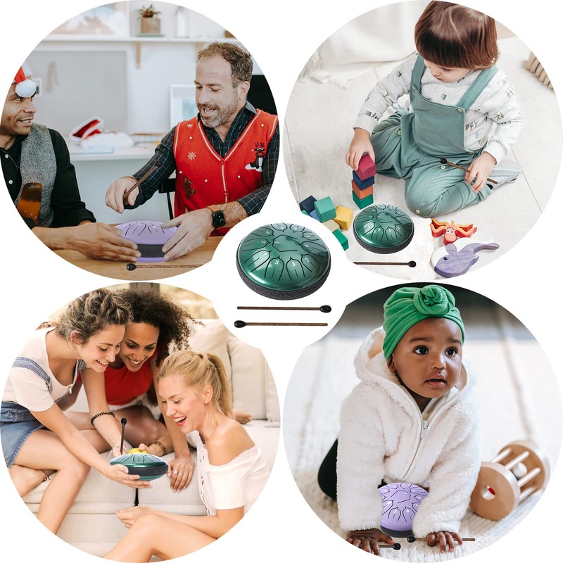 • 【Wide Application】Bright color instrument will inspire beginners to take an interest in music, it's ideal for musical education, meditation, concert, yoga, zen tone, music theme or birthday party. Ideal for handpan drum learning and practicing for children, adults or beginners, family entertainment, friends gathering and travel entertainment.