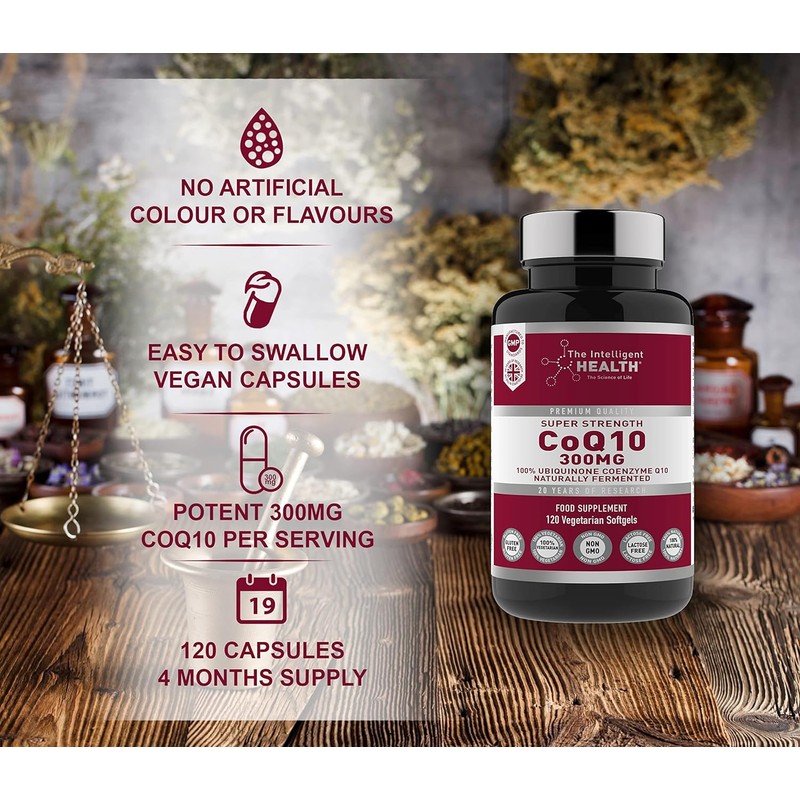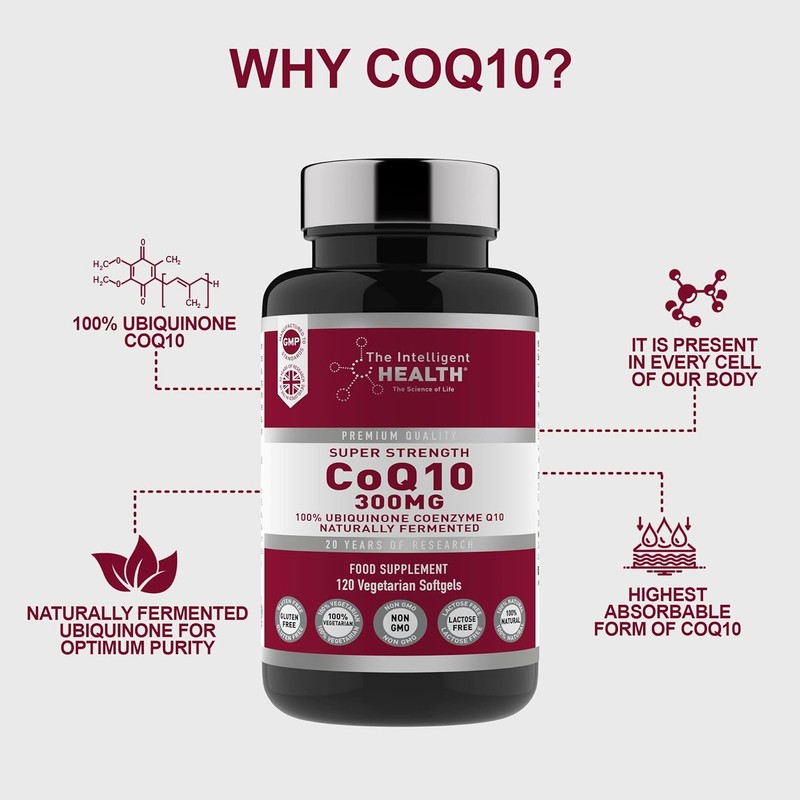 Ubiquinone Coenzyme Q10 300mg Softgel Capsules, 120 Super Strength Vegan Friendly Naturally Fermented High Absorption CoQ10 Capsules Made in The UK to GMP Standards – by The Intelligent Health