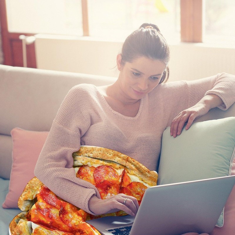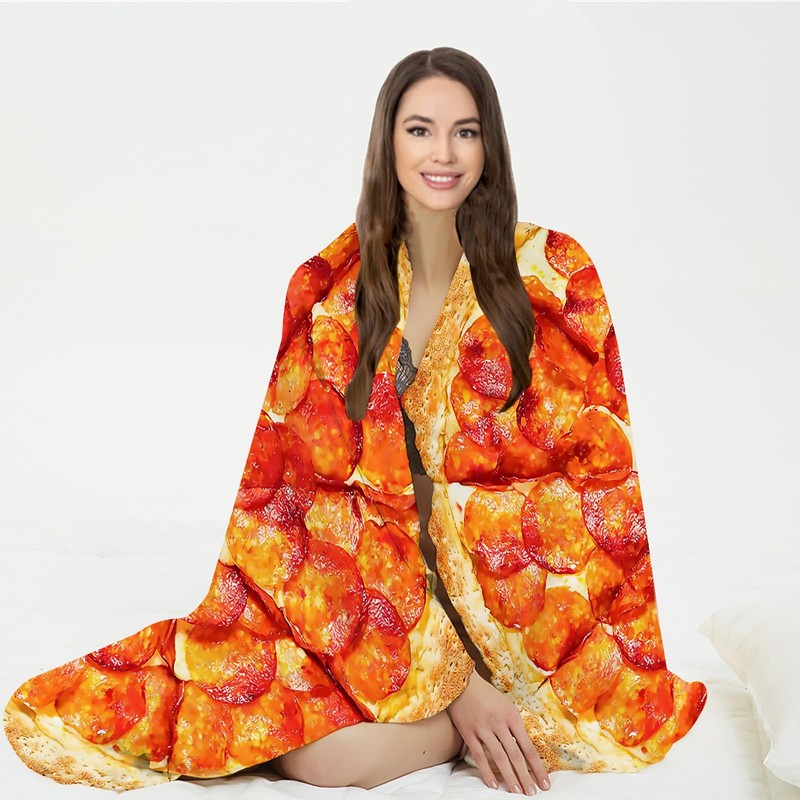 - 【Round Food Blanket】: Have you ever wanted to be a giant Sushi, Tomato, Pizza, Cookies? Simply lay down inside the gag blanket and roll yourself up, becoming the food that you've always wanted to be.