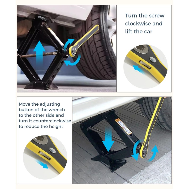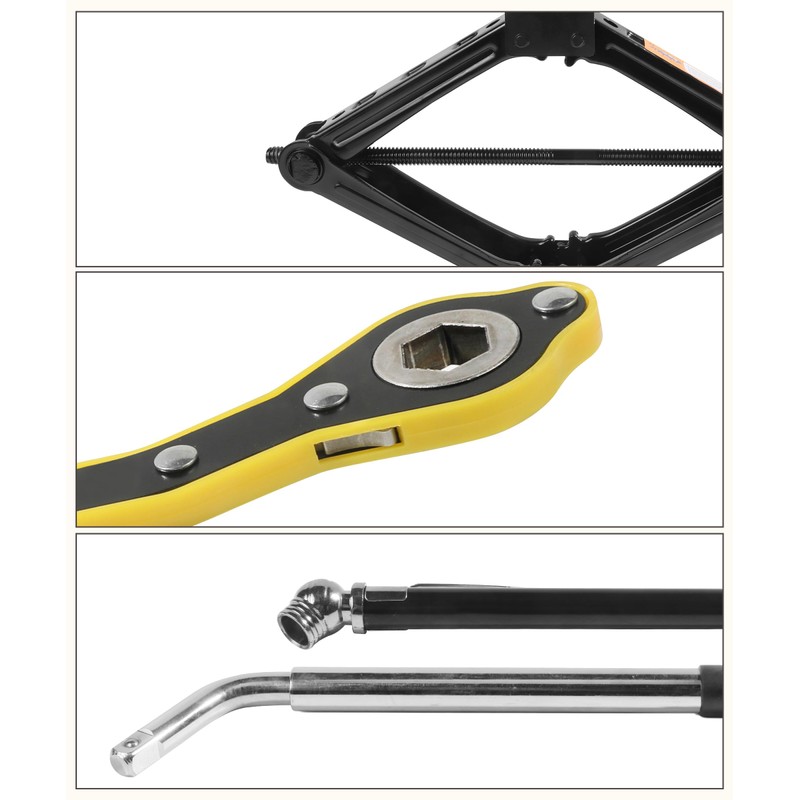 - [Easy to Operate] The scissor jack is designed to be simple and easy to operate, while the tire wrench and tire changing kit are designed to provide a comfortable grip and maximum leverage, ensuring reliable performance for all your lifting needs.