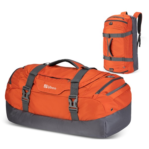 Ubon Travel Duffel Bag 4-Way Sports Gym Backpack 55L With Shoe Compartment (Orange,55L)