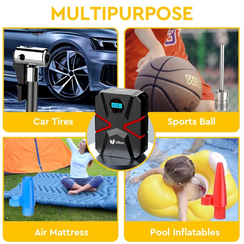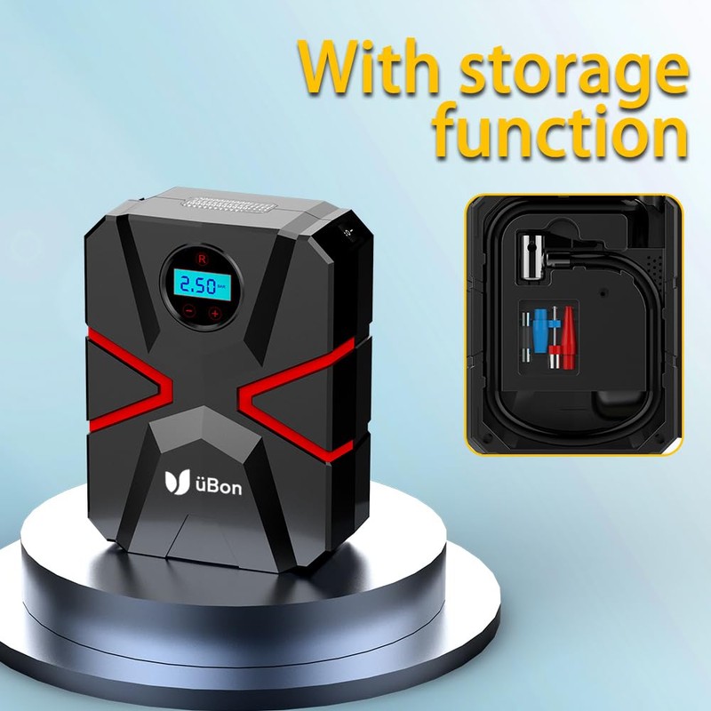 üBon Tyre Inflator: Effortless Inflation Made Easy, 12v Digital & Electric Car Pump for Tyres with Led Light, Auto Pump/Shut Off, Carry Case