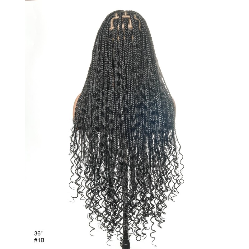 uBraids 36" Boho Knotless Box Braids with Curls Full Hand Tied Lace Braided Wig, Black