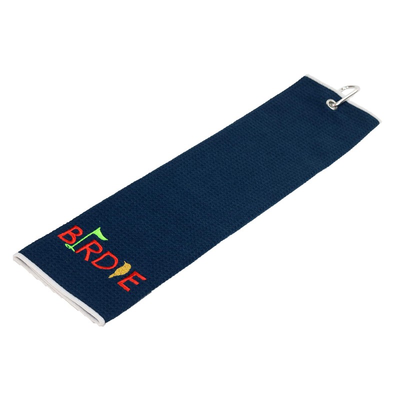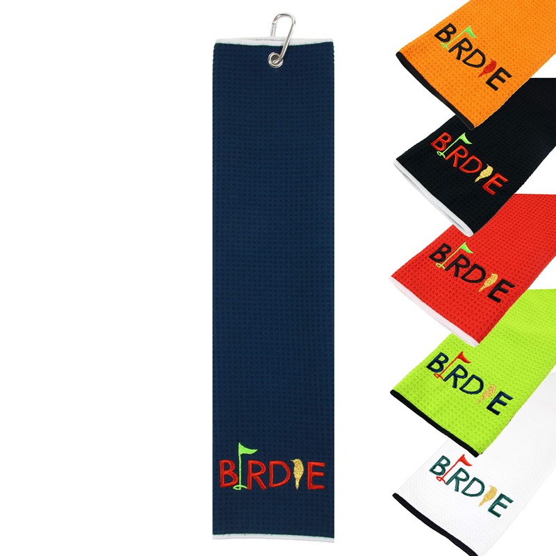 Ubrand Golden Birdie Tri-fold Microfiber Waffle Golf Towel with Carabiner Clip Navy Blue 16”X21”