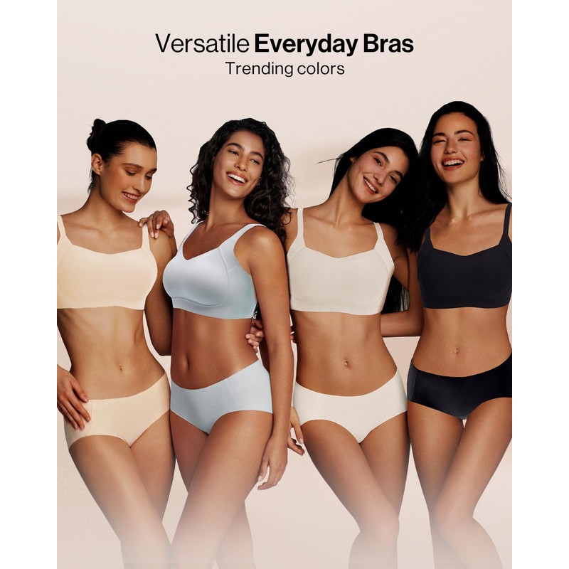 - 【SEAMLESS BRA】 The wireless seamless everyday bra works for most of your t-shirts and fits well for everyone. Back-and-side smoothing technology helps keep seamless and invisible under any tops.