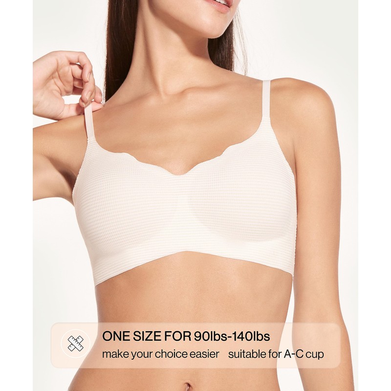 Ubras Women's OneSize Wireless Seamless Wavy Edge Cool Feeling Bra with Back Hook Adjustable Thin Shoulder Strap Adjustable Spaghetti Straps Camisole Bra Light Pink