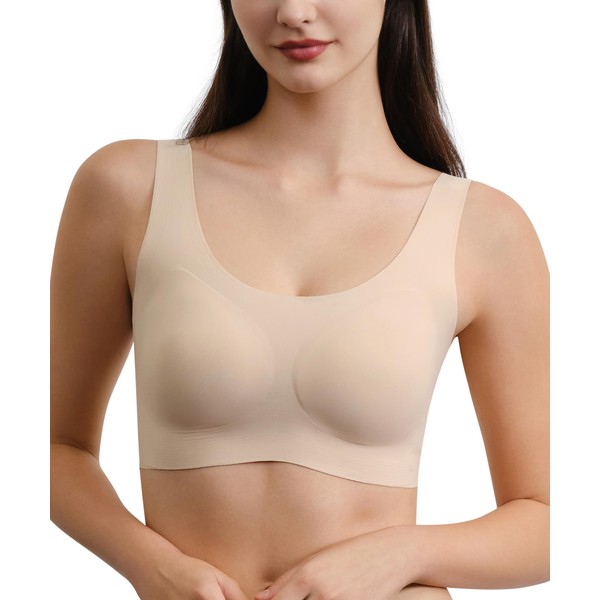 Ubras Seamless Bras for Women Full Coverage Wireless Bralette Widen Straps & Side, Comfortable Breathable Smooth Pull On Bras (Nude, L)