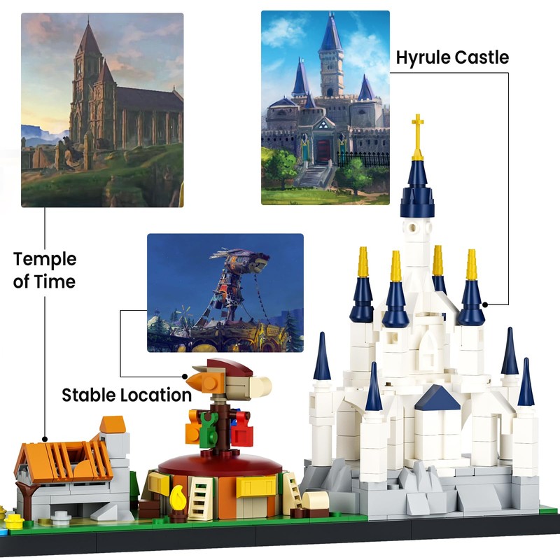 Iconic Skyline Collection: Immerse yourself in the magical world of Hyrule with this captivating skyline collection. Build and display iconic landmarks like the Master Sword, Misty Forest, Sheikah Tower, Temple of Time, Stable Location, and the majestic Hyrule Castle.