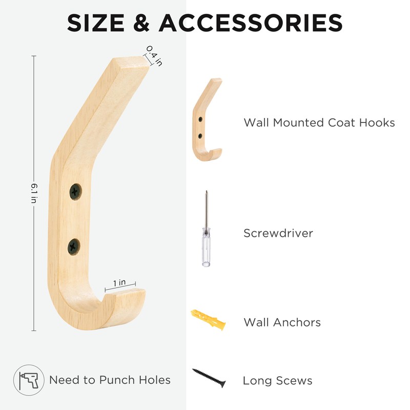 - Home Decoration: The natural wood finish provides a warm and inviting feel that can add a touch of elegance to any space. Whether you're looking to create a cozy entryway, a rustic bedroom, or a warm and inviting kitchen, these coat hooks can help you achieve your desired look