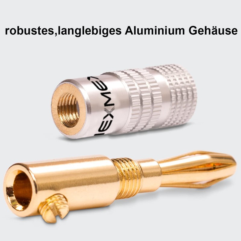 - Optimal contact: high-end banana plug 24 K inside completely gold-plated with spring-loaded fins