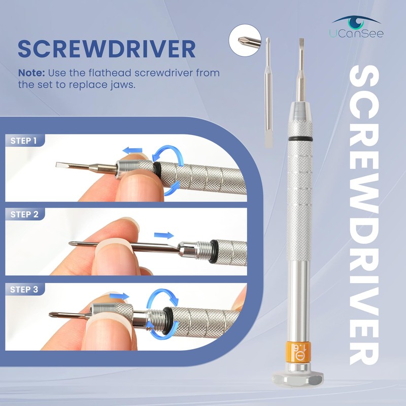 ✔[Toolkit] - Contains all necessary tools for repairing frameless glasses, saving time and cost. The kit is packaged in a portable plastic box.