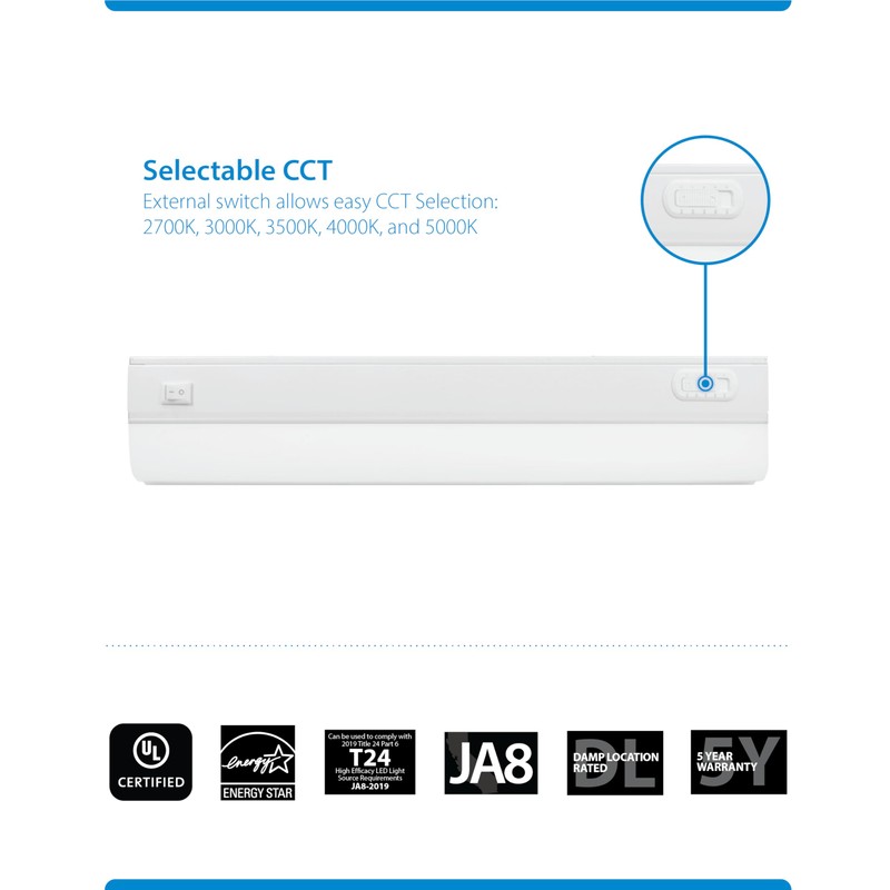 UCB Series 18-inch White Selectable LED Under Cabinet Light with On/Off Switc...