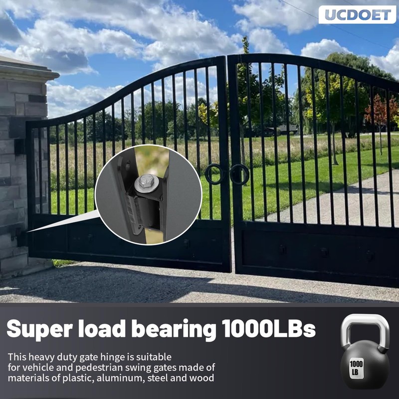 - HEAVY DUTY GATE HINGES - Our heavy hinge(7"L) made of the 6mm thickness steel with grease zerk, which can bolt or weld on directly to the gate and post, hold up to 1000lbs swing gates/pair,such as driveway trailer gates