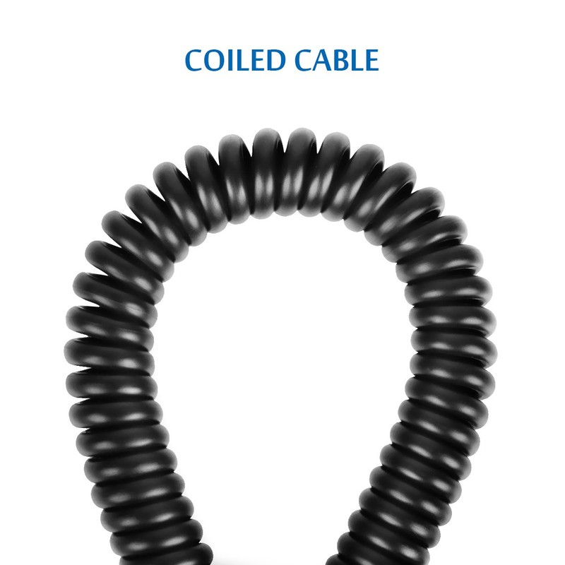 - LENGTH -- The cable is coiled to prevent clutter, but it can extend up to 17.7". If you have any questions about our product, please feel free to contact us