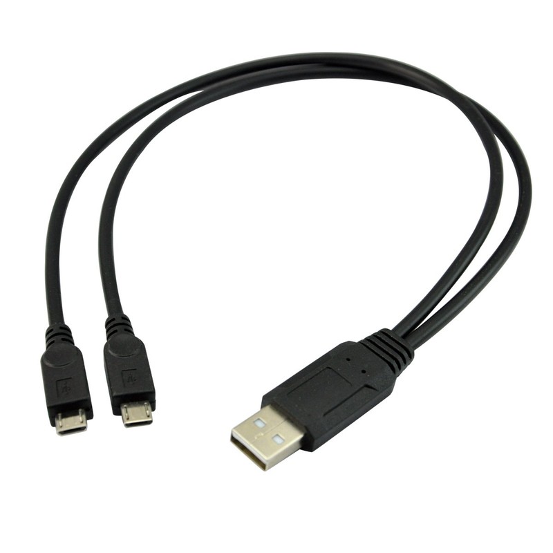 USB A to micro USB splitter features a standard Type-A USB connector on one end and two Micro connector on the other. For example, you can plug the Type-A connector into your computer, then plug the Micro Type-B connector into one or two devices with a Micro Type-B port. Devices like mobile phones, smartphones, MP3 players, tablets, digital cameras and digital camcorders often have Micro Type-B ports.