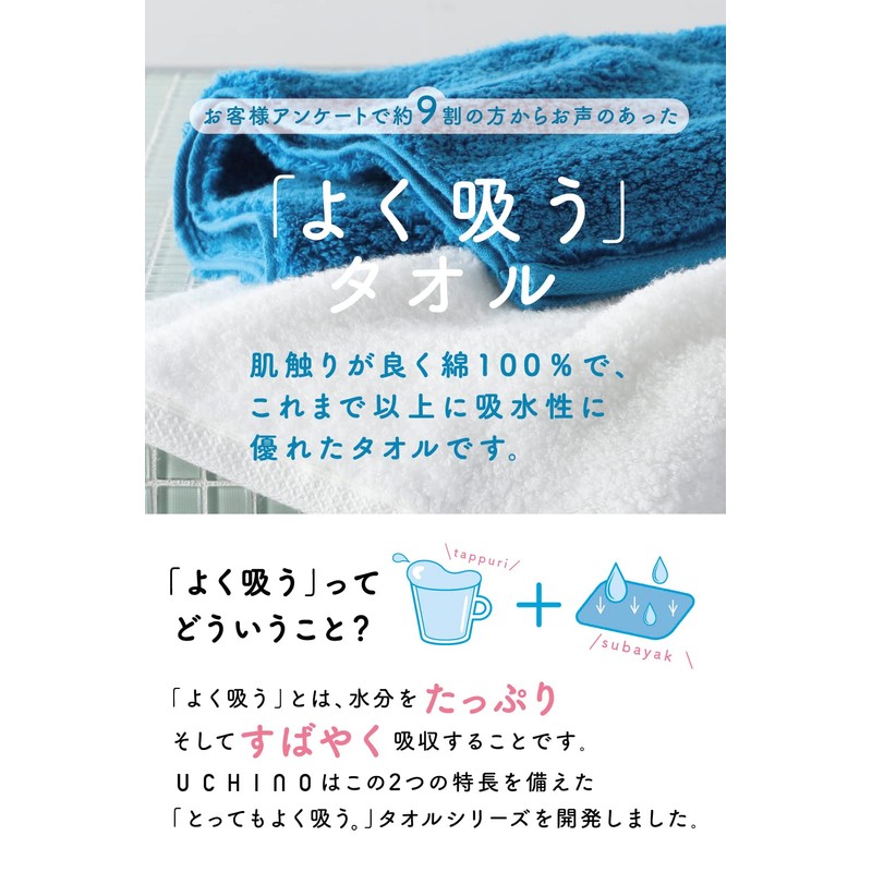 That's why UCHINO pays special attention to this "sucking well" and developed a towel series with 100% cotton that is more absorbent than ever before.