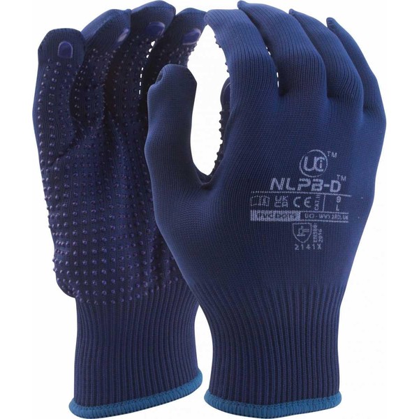UCi NLPB-D Full Fingered Low Lint 13 Gauge PVC Dotting Palm Polyester Dexterity Durability Gloves - Blue (9 / Large)
