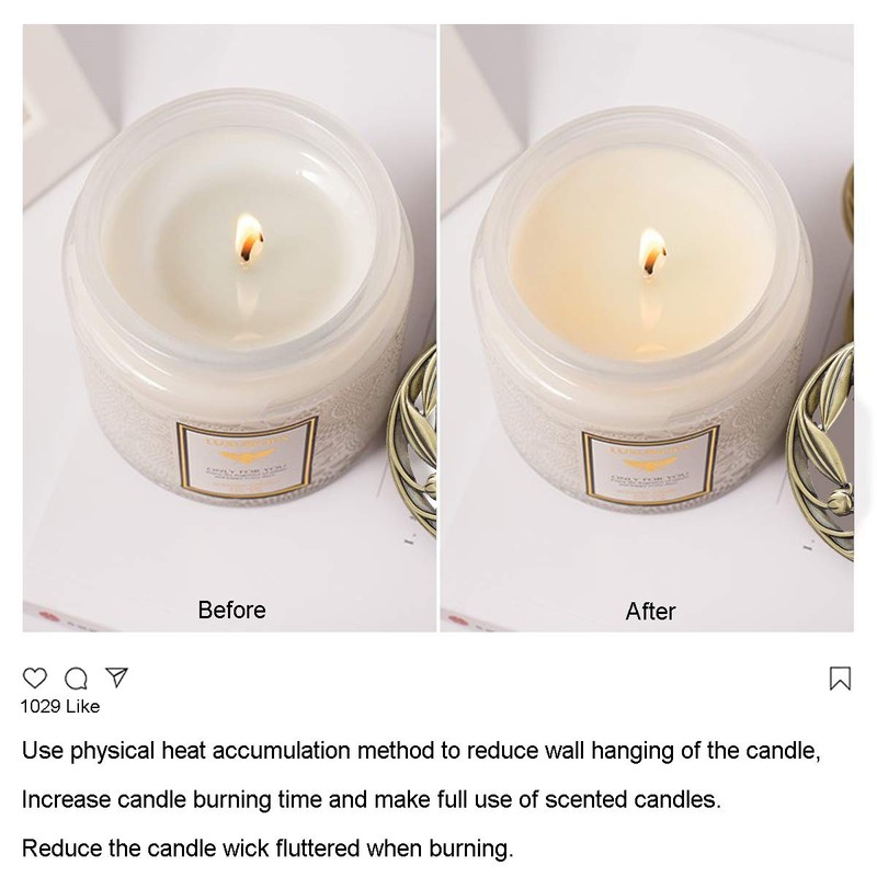 - Helps candles burn more evenly- Candle topper makes the Candle burn evenly so you get to enjoy the entire candle without burning a hole down the middle.Simply place a lid on a jar candle and it will help the candle flame burn steadier while allowing superb distribution of the scent