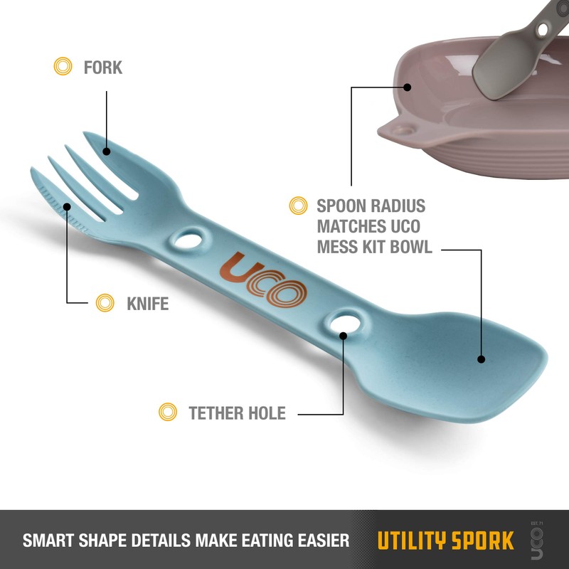UCO Utility Spork Camping Spoon-Fork-Knife Utensil, 2 Pack