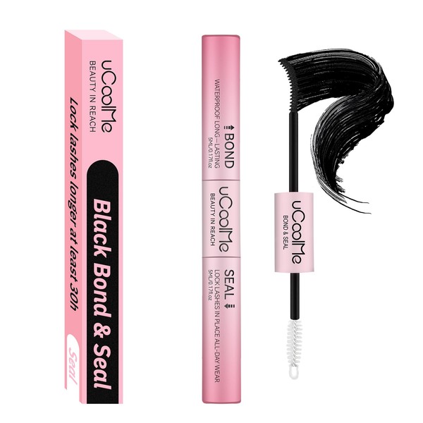 uCoolMe Lash Bond and Seal Waterproof for Lash Clusters New Upgrade Leak-Proof Cap Upgraded Airtight Pipe Material 144Hours Hold Long-Lasting Non-Irritating Lash Glue for DIY at Home(Black Bond,10ML)