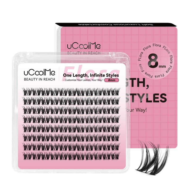 UCOOLME uCoolMe Flora Lash Clusters One Length 8mm D Curl Individual Lashes Eyelash Clusters DIY Eyelash Extension 0.05mm Ultra-Thin Black Lash Band(Flora,Only 8mm)