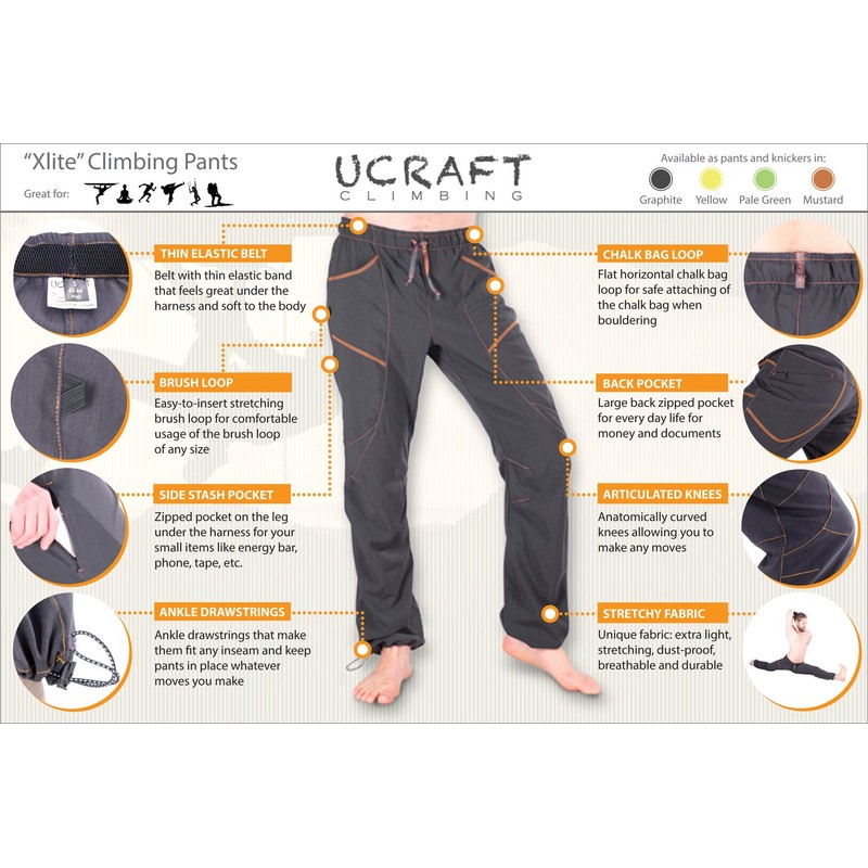 Ucraft "Xlite Rock Climbing, Bouldering and Yoga Pants. Lightweight, Stretching, Breathable (410 L Graphite)