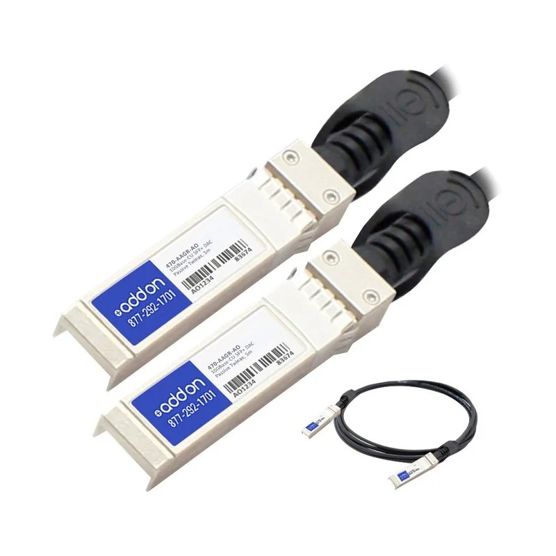 This is a Dell® 470-AAGR compatible 10GBase-CU SFP+ to SFP+ direct attach cable that operates over passive copper with a maximum reach of 5.0m (16.4ft). It has been programmed, uniquely serialized, and data-traffic and application tested to ensure it is 100% compliant and functional. This direct attach cable is TAA (Trade Agreements Act) compliant, and is built to comply with MSA (Multi-Source Agreement) standards. We stand behind the quality of our products and proudly offer a limited lifetime warranty.