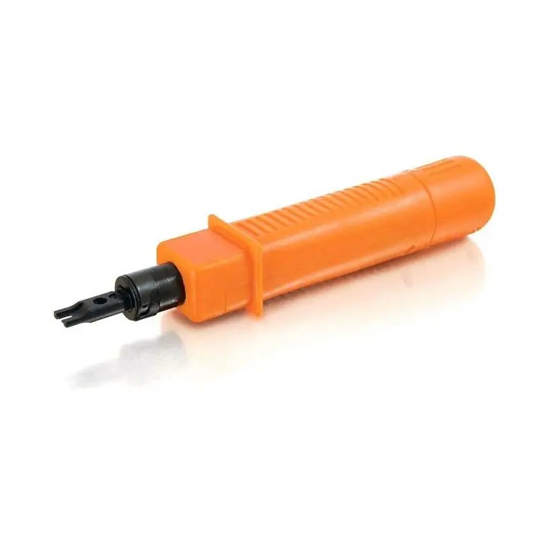 This impact punchdown tool has an impact mechanism inside divided from the turnable body. It also has a rugged frame with a storage compartment in the tool's body for storing one blade. Made from hardened SNCM-21, the blade is interchangeable and reversible - very convenient. Plus, you can quickly change the blade without using a screwdriver.