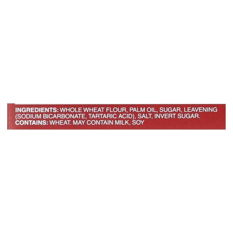 ingredients : whole wheat flour;palm oil;sugar;leavening;sodium bicarbonate;tartaric acid;salt;invert sugar