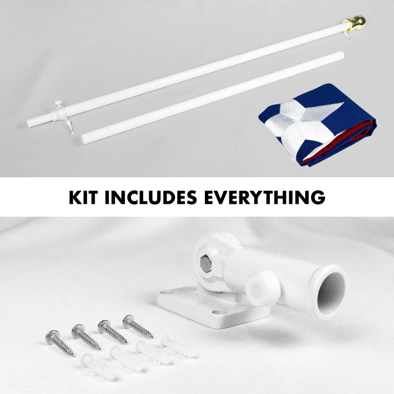 UD_G128 Flag Pole 5 FT White Tangle Free & Texas Flag 2x3 FT Combo Embroidered Spun Polyester