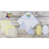 Terry Hooded Towel With Screen Prints (80% Cotton / 20% Polyester), Blue Knotted Baby Cap (100% Cotton), Blue Knotted Baby Cap (100% Cotton), Four Piece Wash Cloth Set (80% Cotton / 20% Polyester Terry), Wash Cloth Mitten, Wash Cloth Mitten