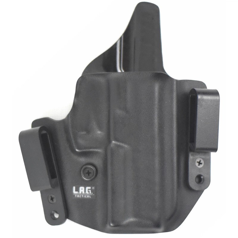 The Defender is LAGs most popular and most loved holster. The easily interchageable belt loops take you seamlessly from your outside the waistband range set up, to your highly concealable inside the waistband daily carry in no time at all. The Defender features easily adjustable retention and they are designed to be so comfortable and lightweight , you may just forget youre wearing one. If you could just have one holster for the rest of your life, make this the one!