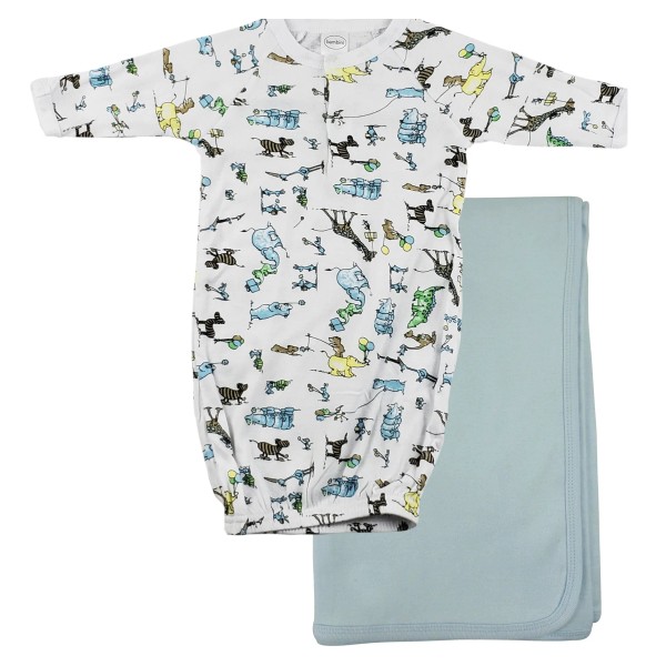 Infant Gown With Long Sleeve with Mitten Cuffs with Receiving Blanket are the best way to keep your little one warm all night long; especially in the Autumn and Winter months. WIth the built-in mittens his hands will be kept nice and toasty so you can even have him bundled up in it for any outdoors time in the evening. Covered Elastic Bottom 100% Cotton 1x1 Rib Knit Size: Newborn
