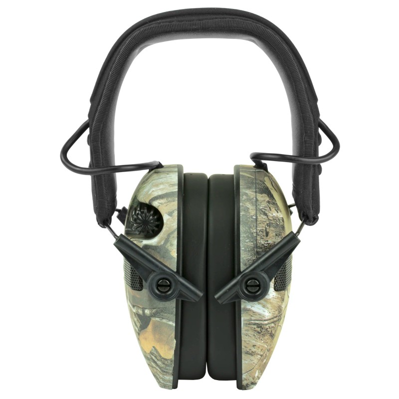 The Razor Muff has two Hi-Gain Omnidirectional microphones that enhance sound detection. They are low noise and frequency tuned for natural sound clarity and the recessed volume control knobs allow the user to tune the muff to the frequency position that best matches the users hearing. The independent volume control permits the hunter the ability to dial each side of the muff to a comfortable sound level for each ear. A sound activated compression circuit has a reaction time of 0.02 seconds, and through the use of sound dampening composite material, the Razor Muffs feature a noise reduction rating of 22+dB. The Razor Muff has a folding compact design, ultra low profile ear cups, and incorporates a comfortable headband with a metal frame for increased durability. The sound dampening composite housing aids in the protection against harsh noises that can damage hearing. Operates on two included AAA batteries.